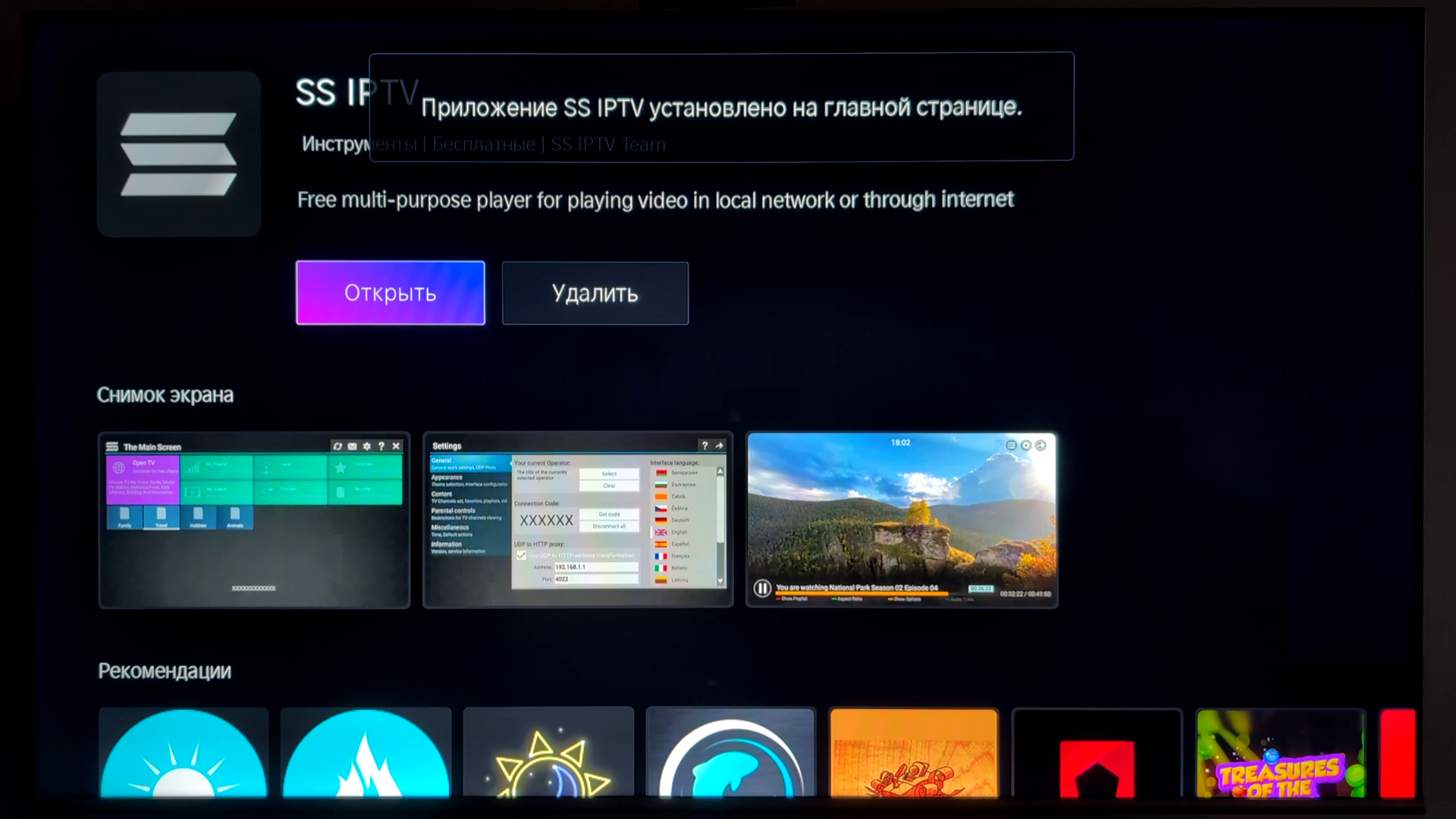Откройте SS IPTV на вашем телевизоре.