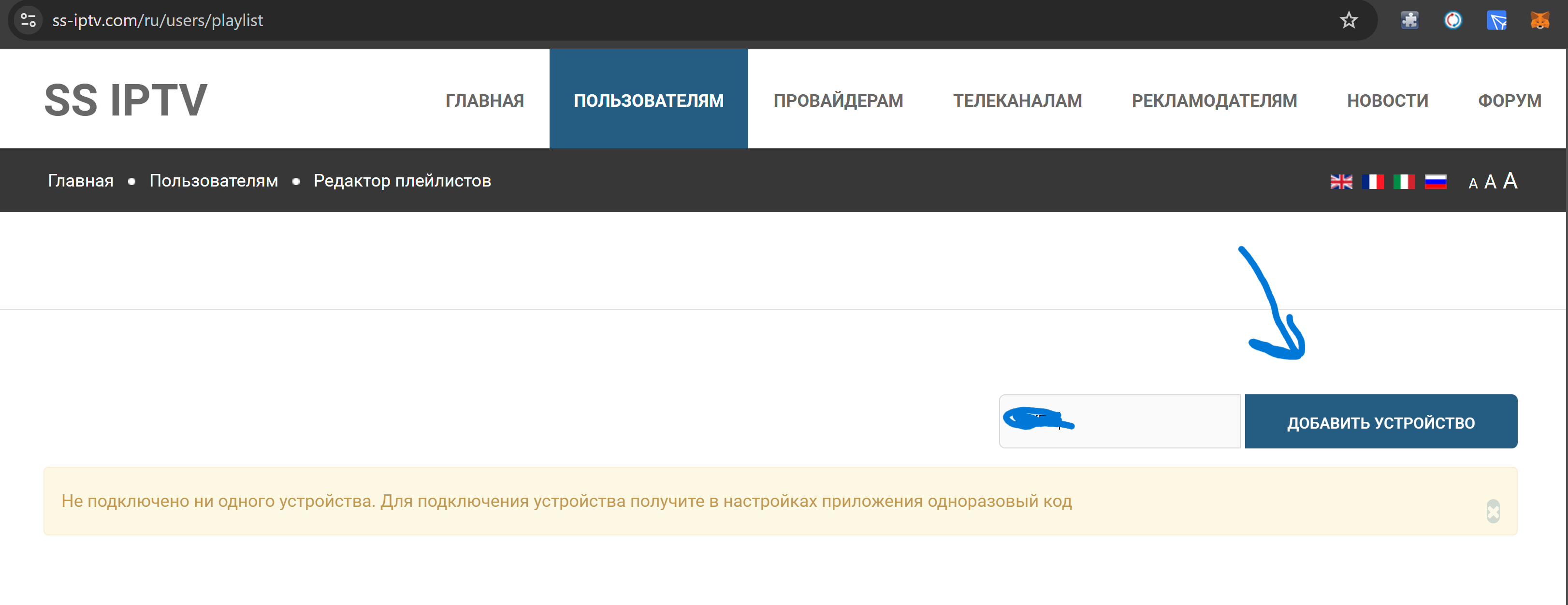 Перейдите на сайт ss-iptv.com с вашего компьютера или мобильного устройства.